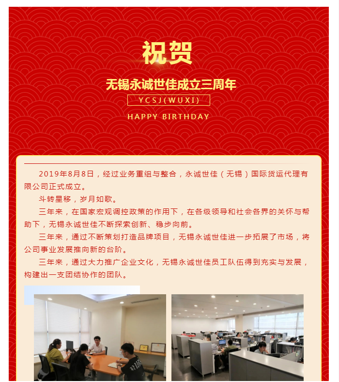 無(wú)錫永誠(chéng)世佳成立三周年!