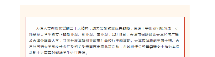 永誠世佳總經理李珊受邀參加2024年津幗創(chuàng)業(yè)故事匯高校行活動